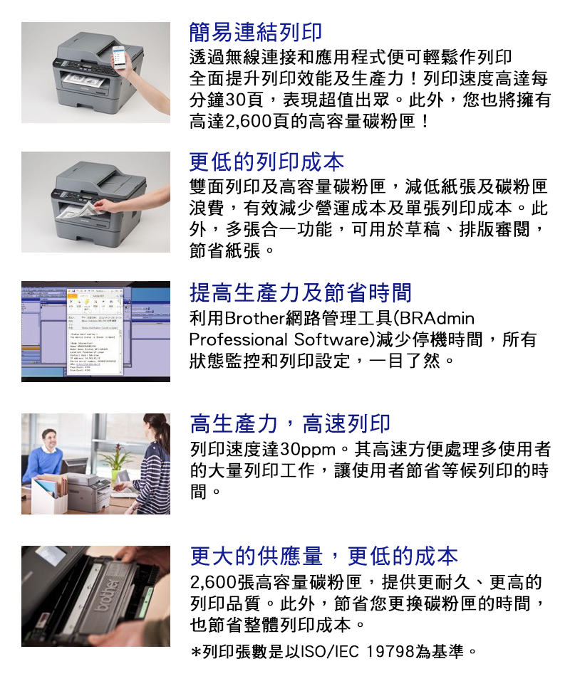 2400*600dpi 30PPM /32MB記憶體 介面USB2.0 /自動雙面列印/複印彩色掃描/有線無線網路
