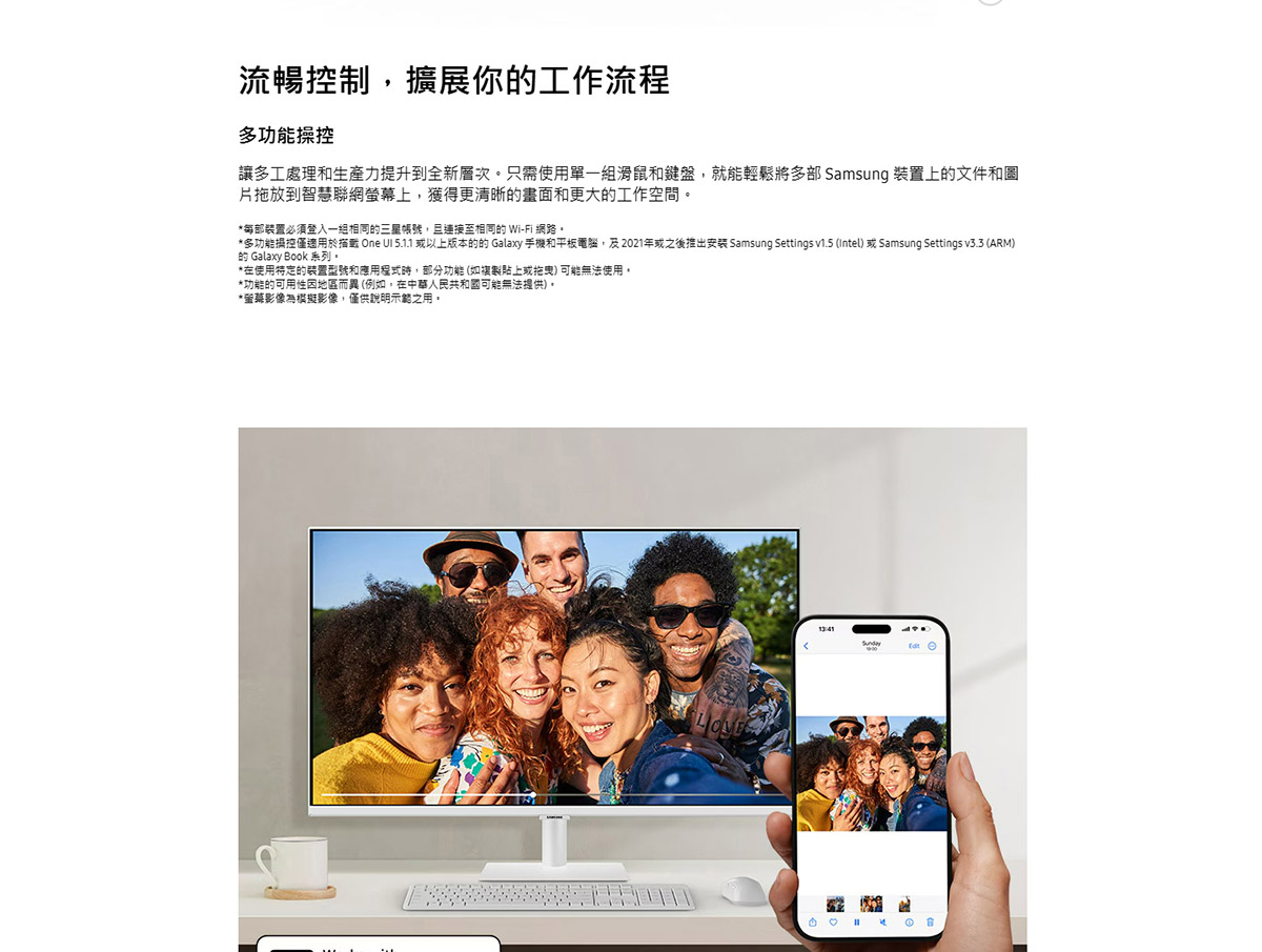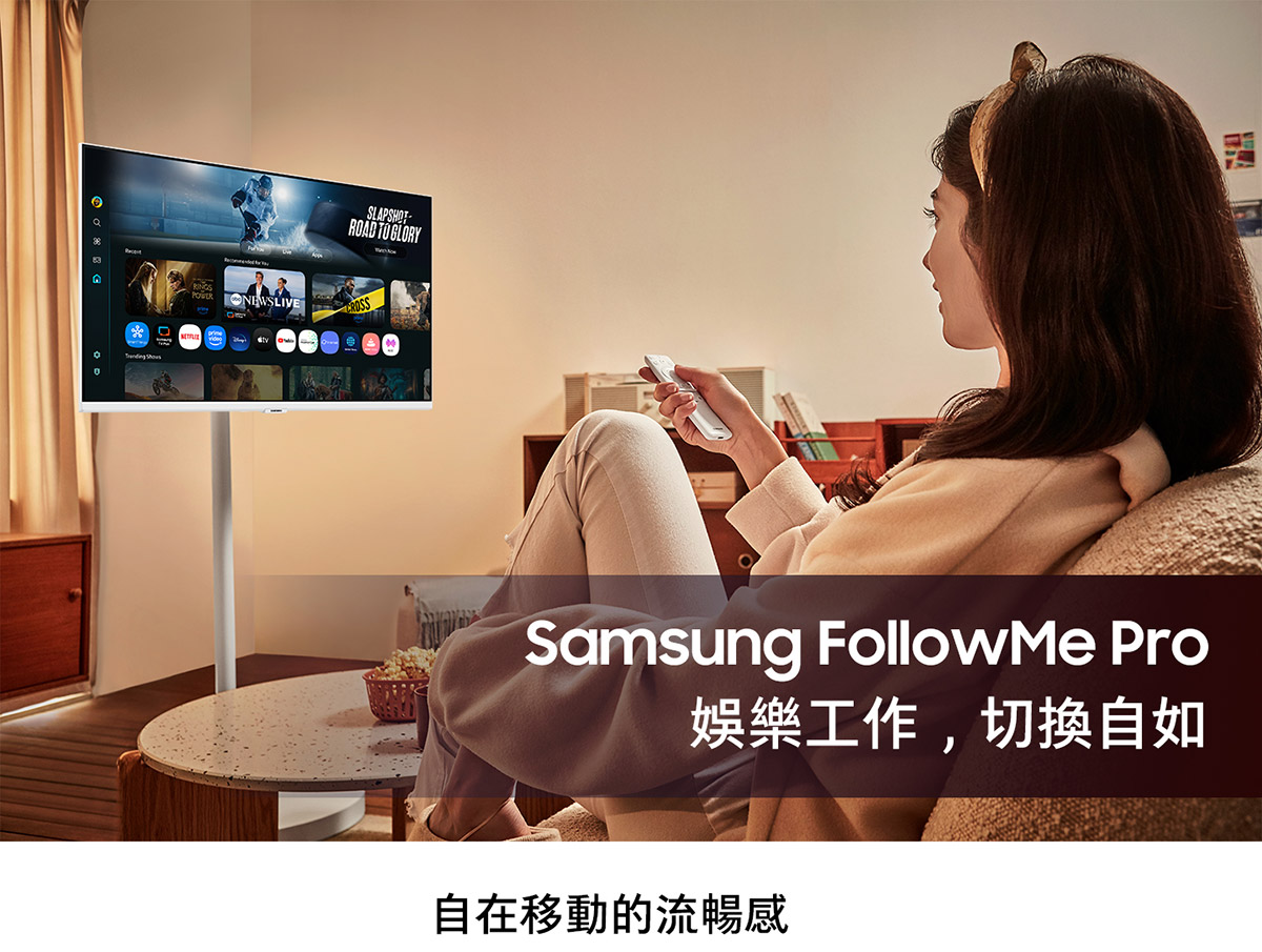 Samsung 32" AI FollowMe Pro 4K 移動式智慧聯網螢幕組-白(M7 M70F) ( LS32FM703UCXZW + HA-MTS2S32WHT )