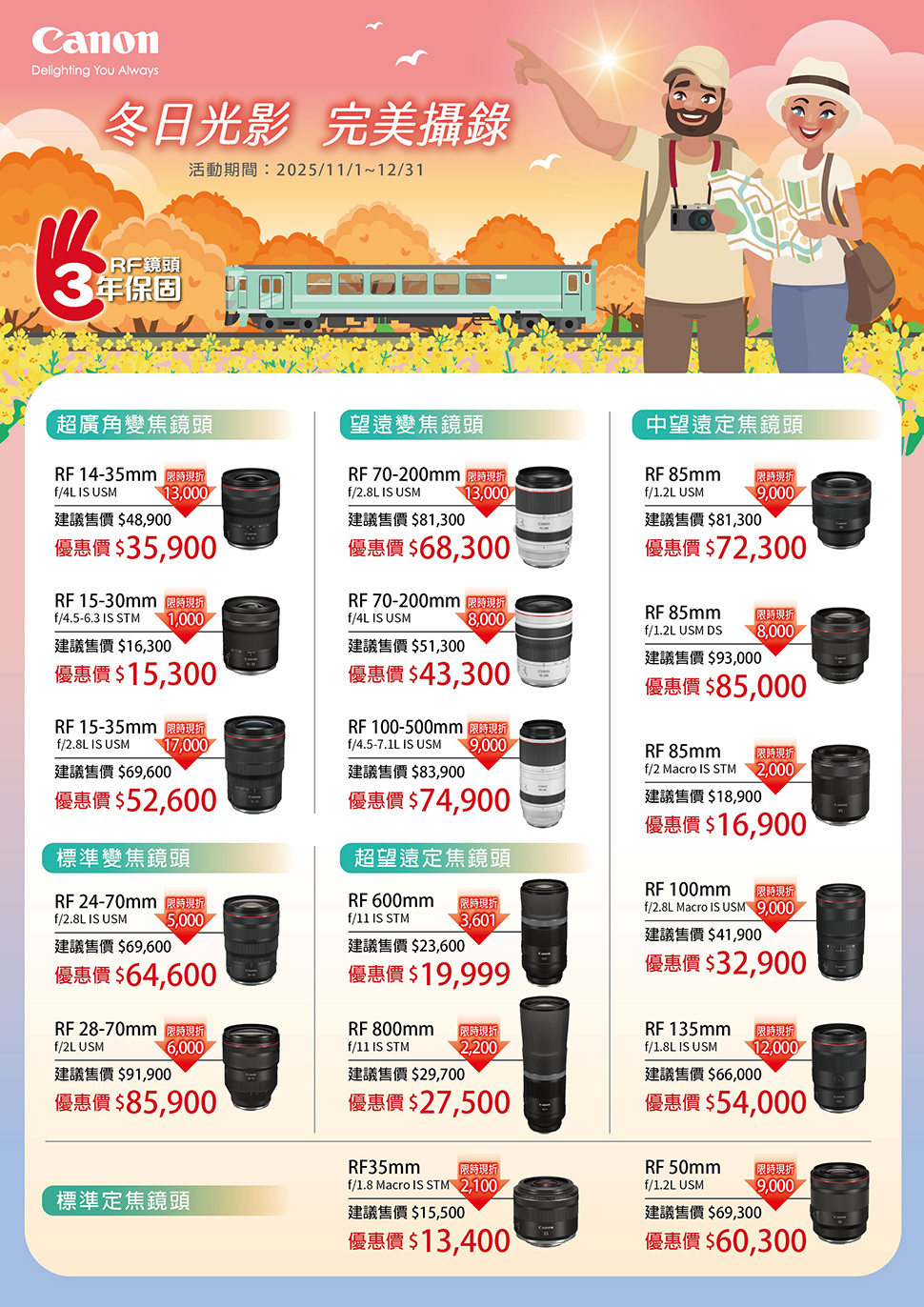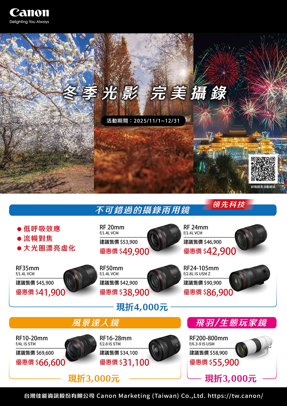 Canon 冬日光影 完美攝錄:《鏡頭篇》 活動時間:2025/11/1-12/31。