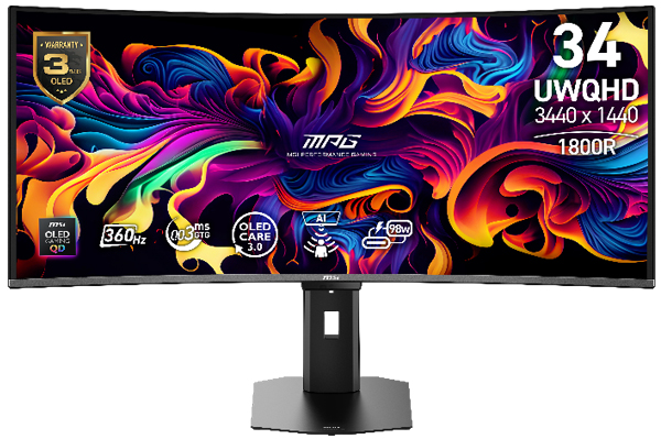 搭載最新 第五代 QD-OLED 面板 的 34 吋 UWQHD (3440x1440) 21:9 超寬電競螢幕。全新 RGB 子像素排列呈現銳利無彩邊畫面,並支援 360Hz 高刷新率。微星獨家 HDR Curve Customization 功能可為玩家帶來更進階的 HDR 顯示體驗,並搭配 OLED Care 3.0,微星獨家AI Care Sensor 透過NPU 演算法即時偵測使用者狀態,智慧調整電源以延長OLED 壽命。