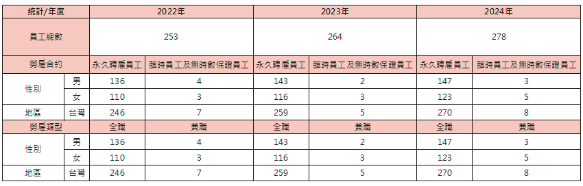※註:全職員工指一週工時達法定工時上限之員工;兼職員工指一週工時未達法定工時上限,僅為部分工時人員,如工讀生、計時人員等。