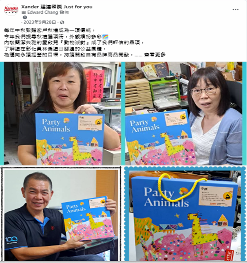 建達國際年度秋節贈禮,致贈客戶偏鄉公益團體的手製愛心餅乾,收穫贈禮的客戶,歡喜分享收穫的感動,一起支持偏鄉公益關懷。 |