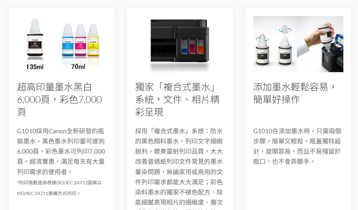 Canon PIXMA G1010原廠大供墨印表 解析度4,800 x 1,200 dpi/High-Speed USB黑白8.5ipm/彩色5.0(ipm) /後方進紙槽 建達料號:INCNG1010-1 原廠型號:G1010 建議售價:$ 2,590 (含稅) 我要購買 商品介紹 商品規格 Canon PIXMA G1010原廠大供墨印表 解析度4,800 x 1,200 dpi 黑白8.5/彩色5.0ipm