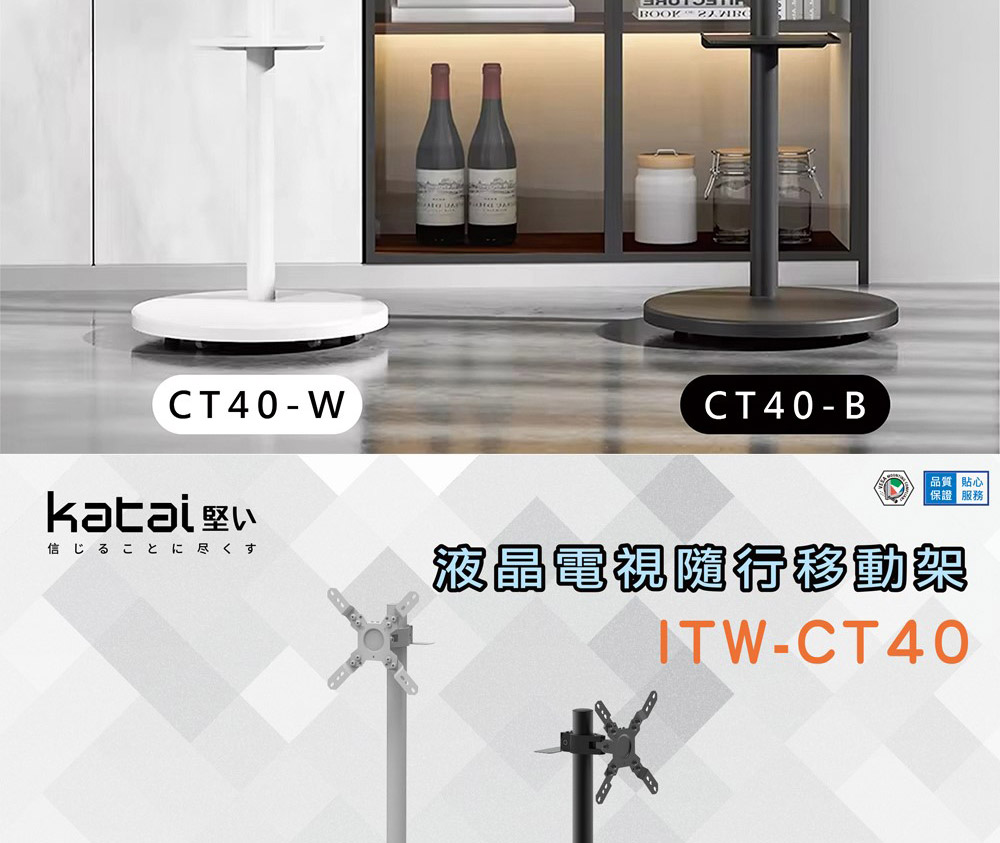 KATAI 27"~40" 液晶螢幕隨行移動架(黑) ( ITW-CT40-B )