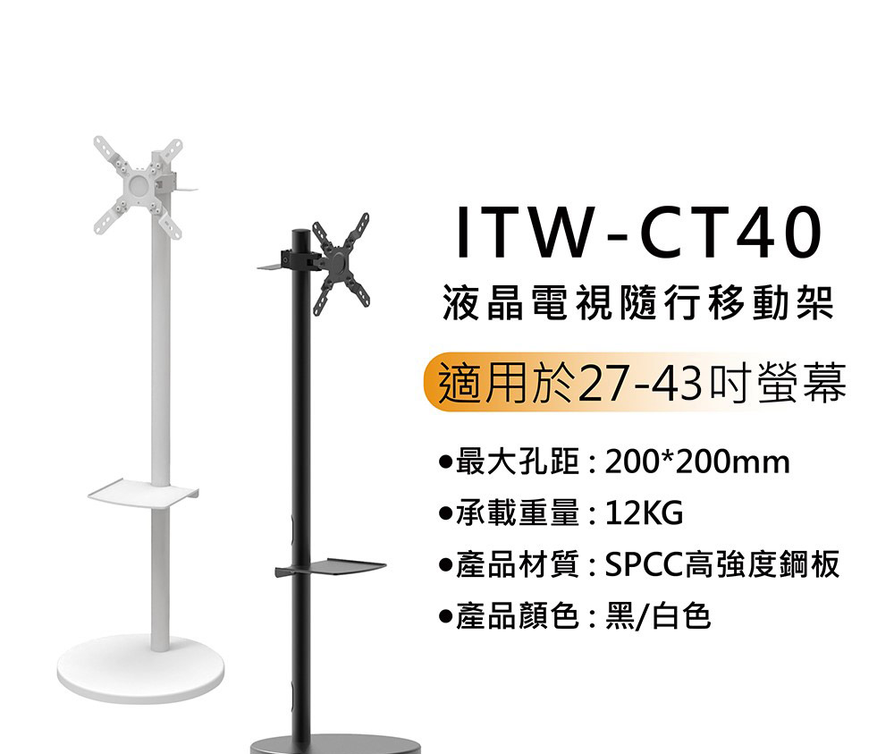KATAI 27"~40" 液晶螢幕隨行移動架(白) ( ITW-CT40-W )