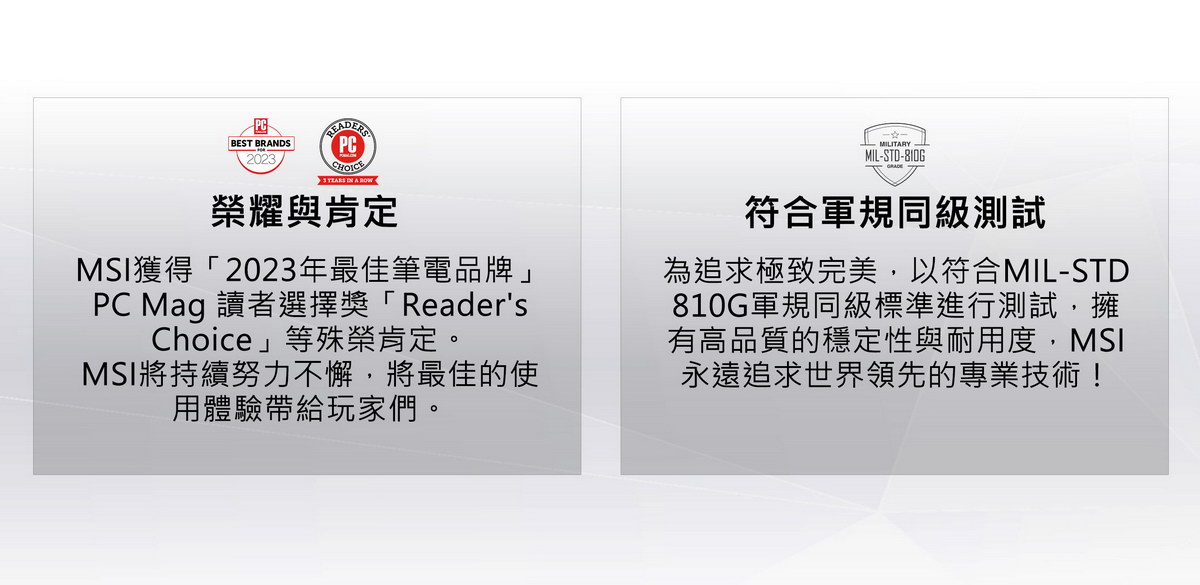 | 依據原廠出貨條碼出廠之筆記型電腦均享微星原廠24個月產品硬體保固期,行動繪圖工作站享微星原廠36個月產品硬體保固期。 | |||