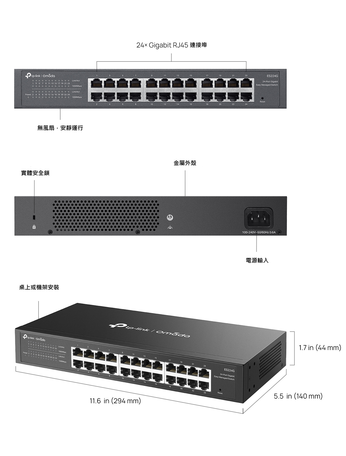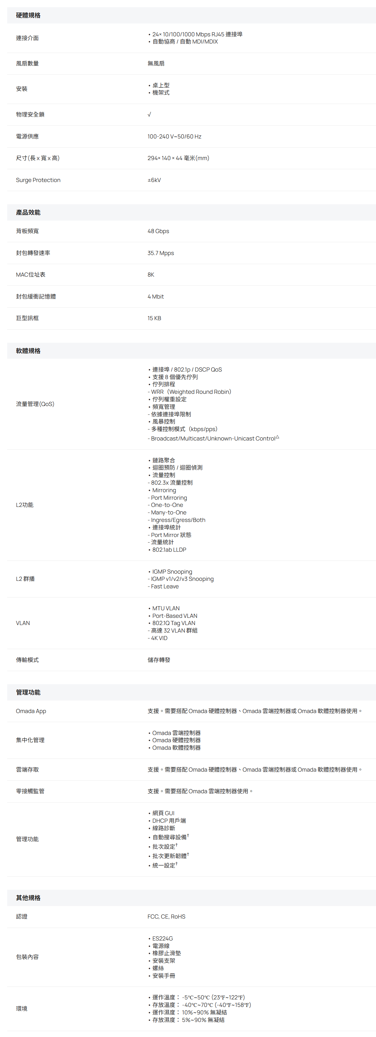 TP-LINK Omada 24 埠 Gigabit 簡易管理型交換器 ( ES224G(UN) Ver:1.0 )