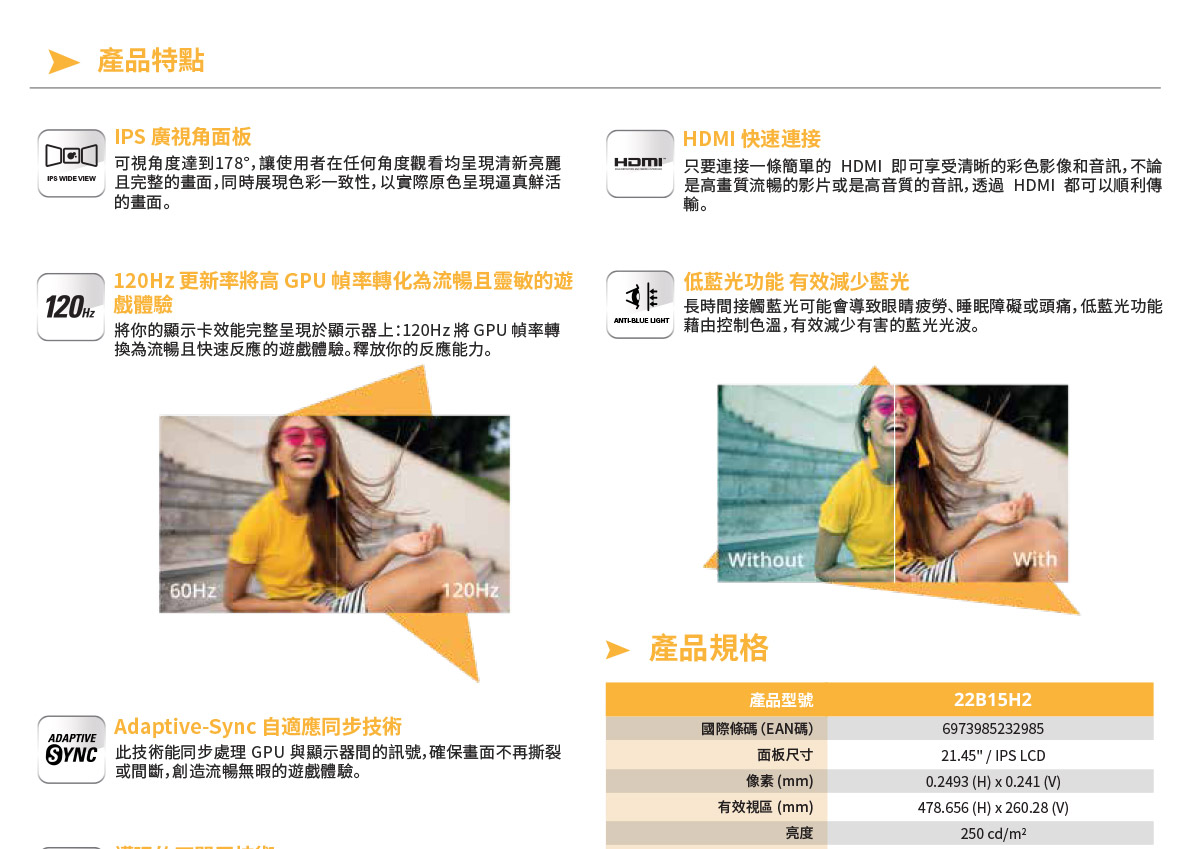 - 解析度1920 × 1080 @ 120Hz‒ HDMI