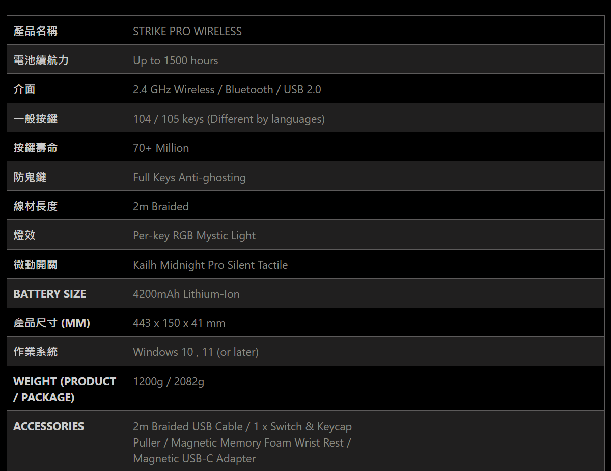 MSI 無線三模靜音鍵盤 ( STRIKE PRO W SILENT TC )