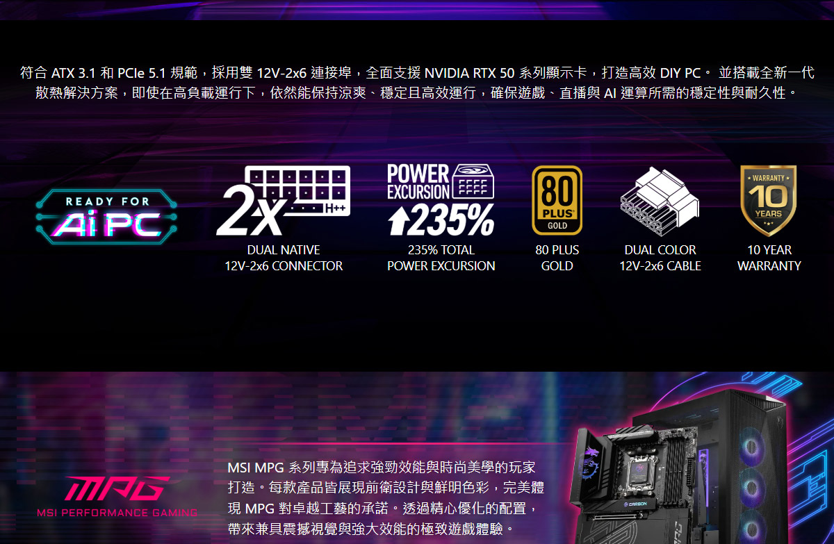 MSI MPG A1250GS PCIE5 II 4711377345040 建達料號:PSMS125GSPCI5II 原廠型號:MPG A1250GS PCIE5 II 建議售價:$ 6,690 (含稅) 我要購買 商品介紹