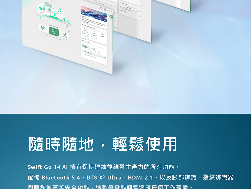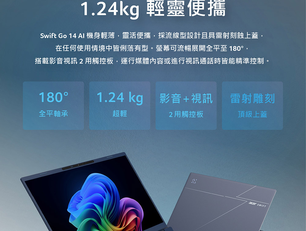ACER Swift Go系列:SFG14-75-9407 ( UN.JNBTA.005 ) 14" 16:10/OLED/鏡面Intel® Core™ Ultra 9 processor 288V32GB LPDDR5X(Onboard)/1TB PCIe Gen4Win11 Home/全機鋁合金 建達料號:NBACUNJNBTA005 原廠型號:UN.JNBTA.005 建議售價:$ 46,900 (含稅) 我要購買 商品介紹