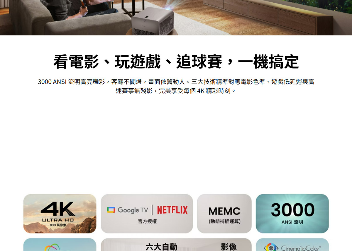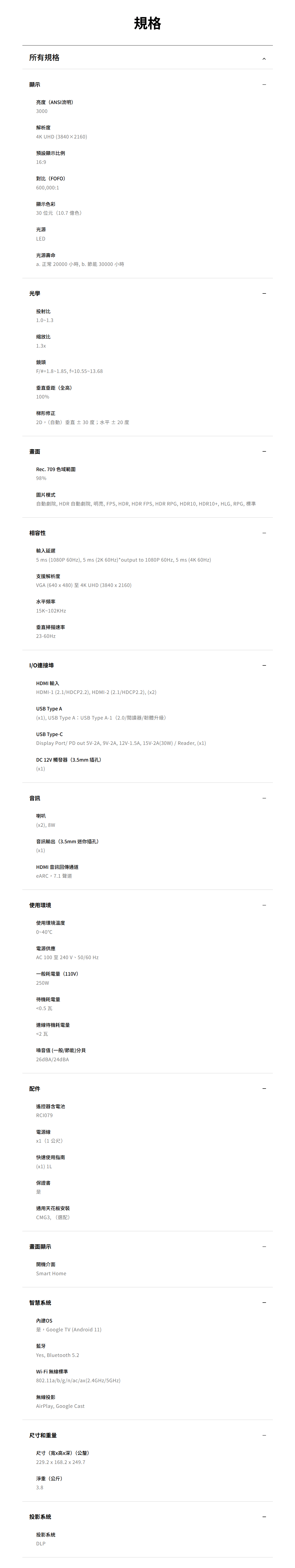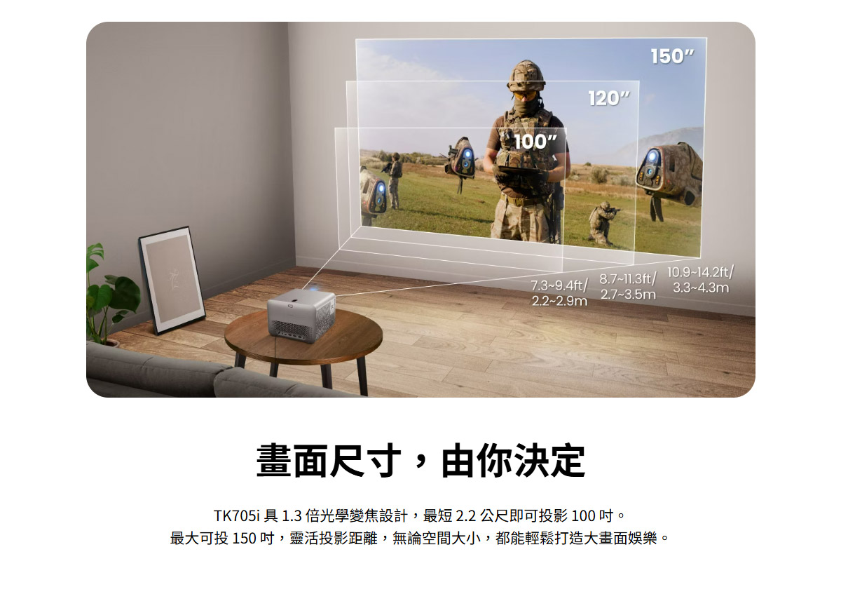 - 喇叭 8W x 2/2.2 公尺投影100 吋