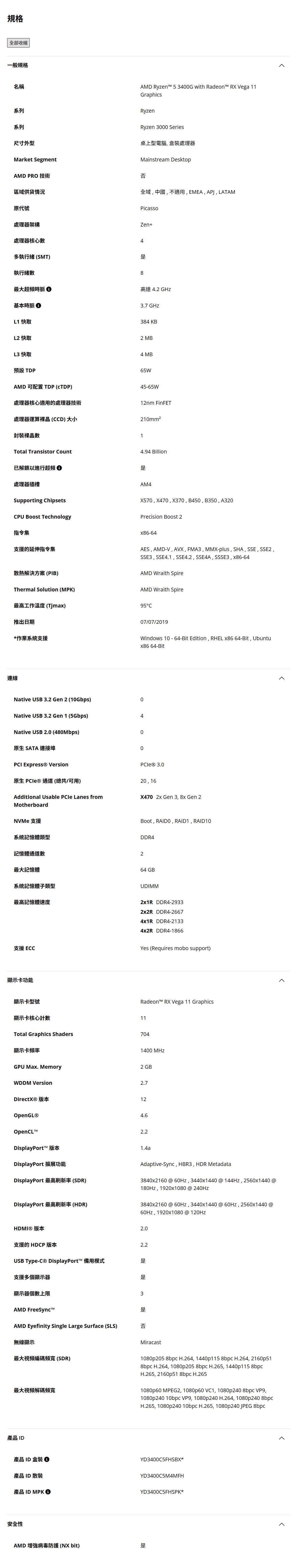 AMD Ryzen 5 3400G ( YD3400C5FHSBX )
