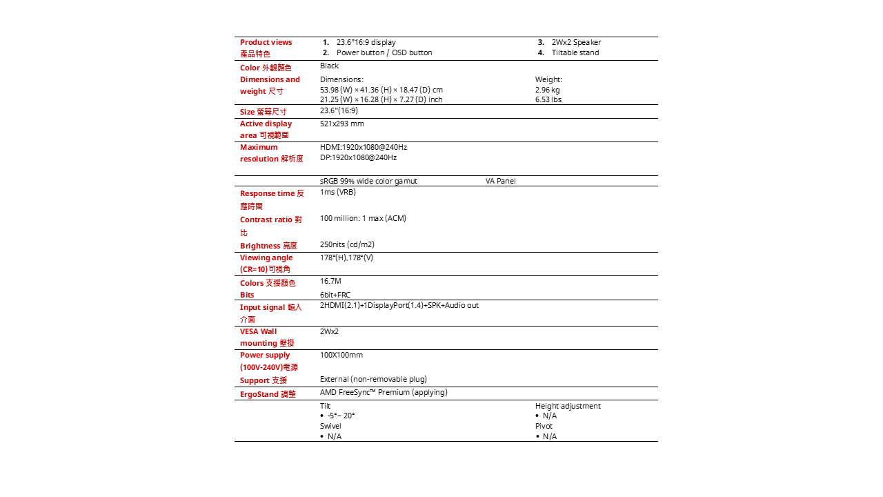 - 2HDMI(2.1)+1DisplayPort(1.4)+SPK 2W