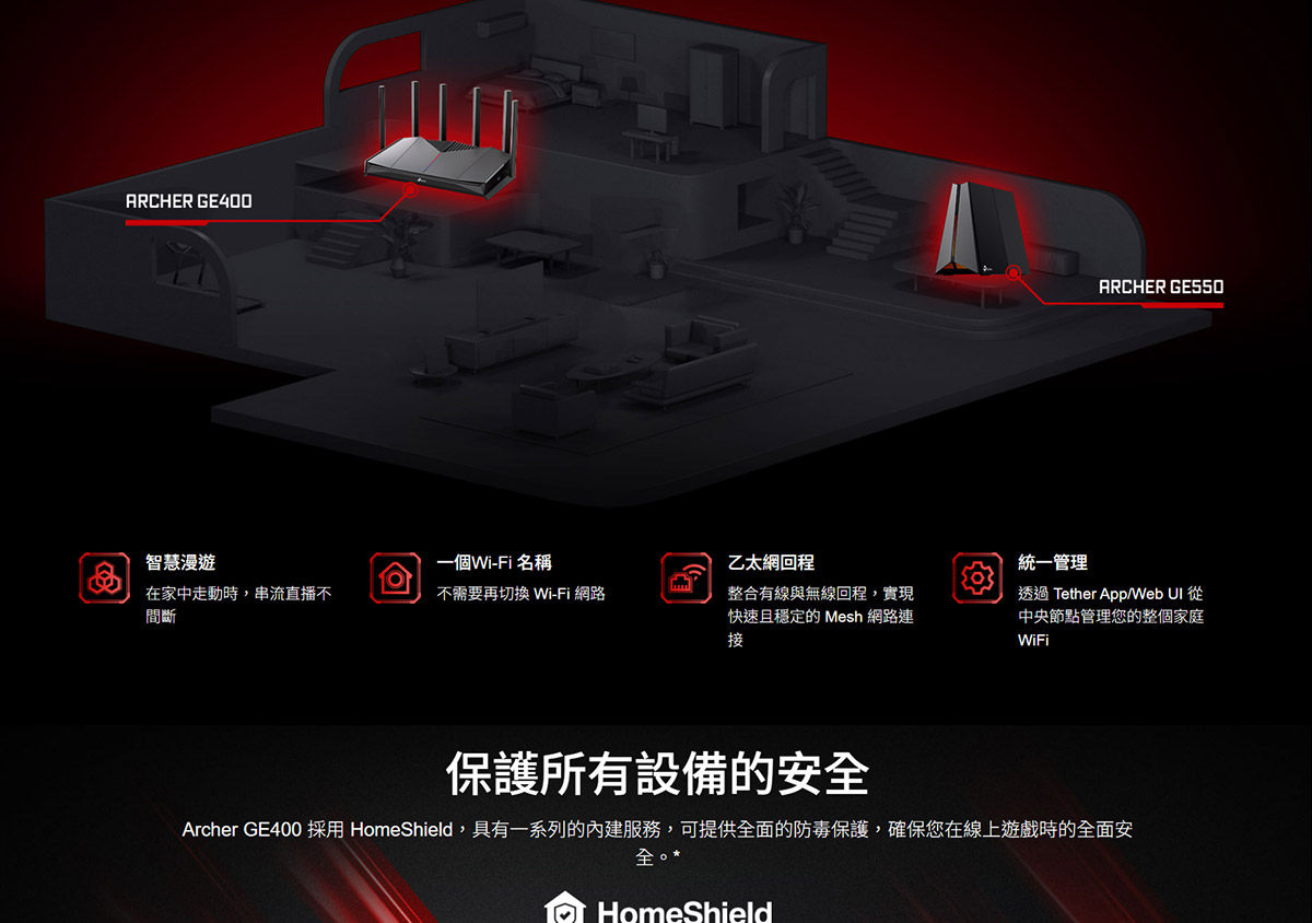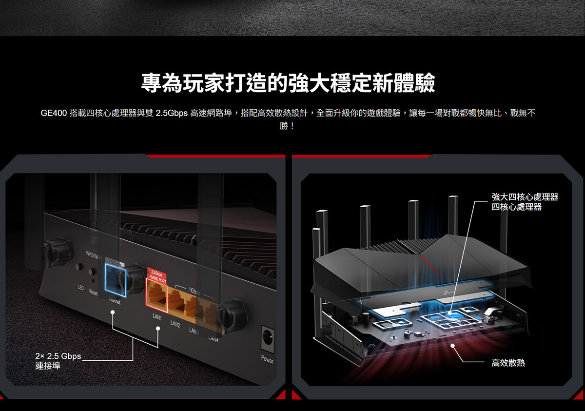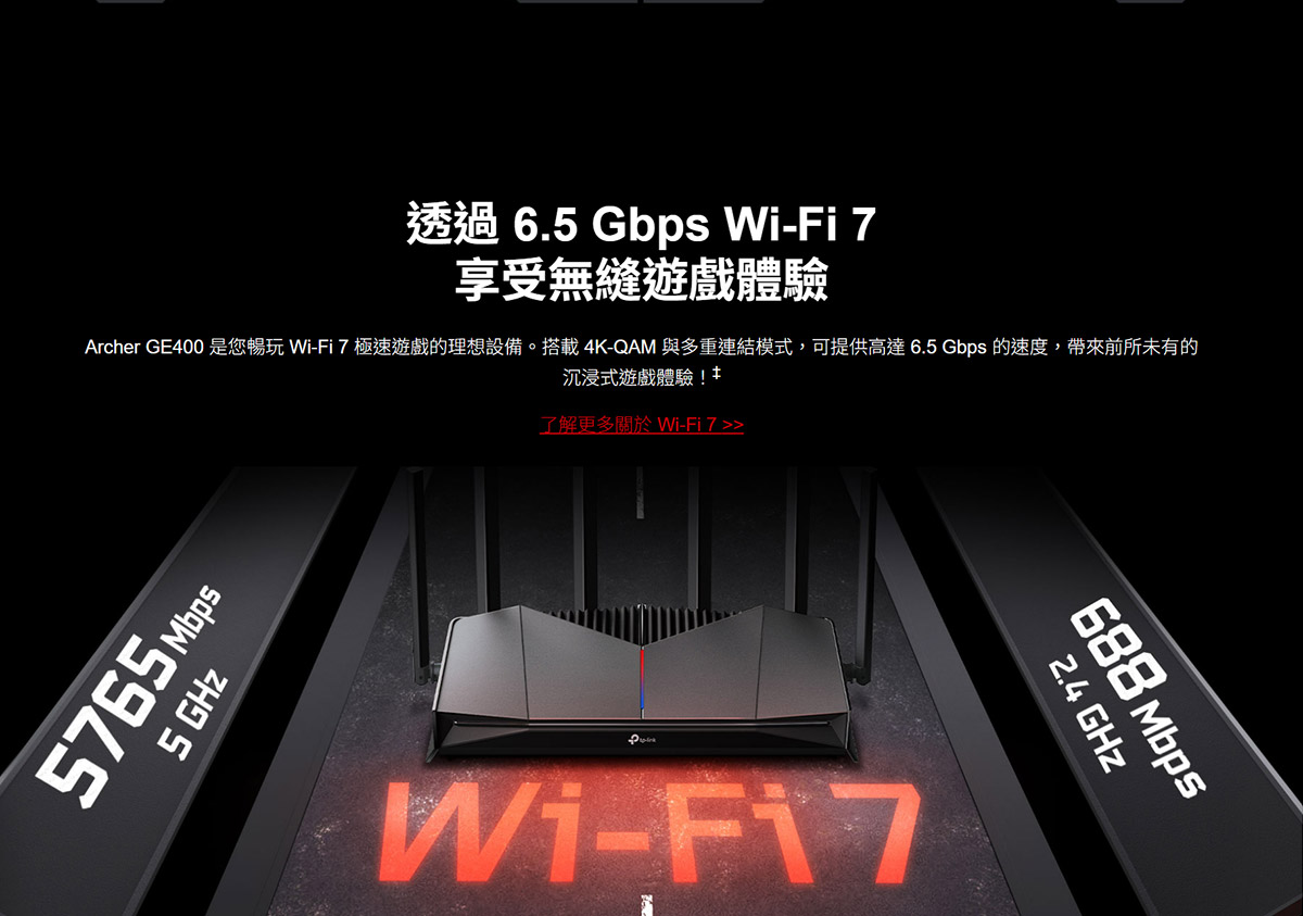 TP-LINK BE6500 雙頻 Wi-Fi 7 電競路由器 ( Archer GE400(US) Ver:1.0 )