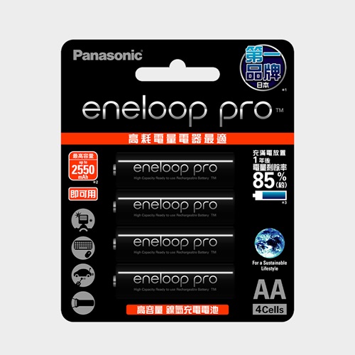 PANASONIC eneloop pro 高階3號充電電池4入 ( BK-3HCCE4BTW ) 2550MAH 建達料號:BTPA-563263 原廠型號:BK-3HCCE4BTW 建議售價:$ 990 (含稅) 我要購買 商品介紹