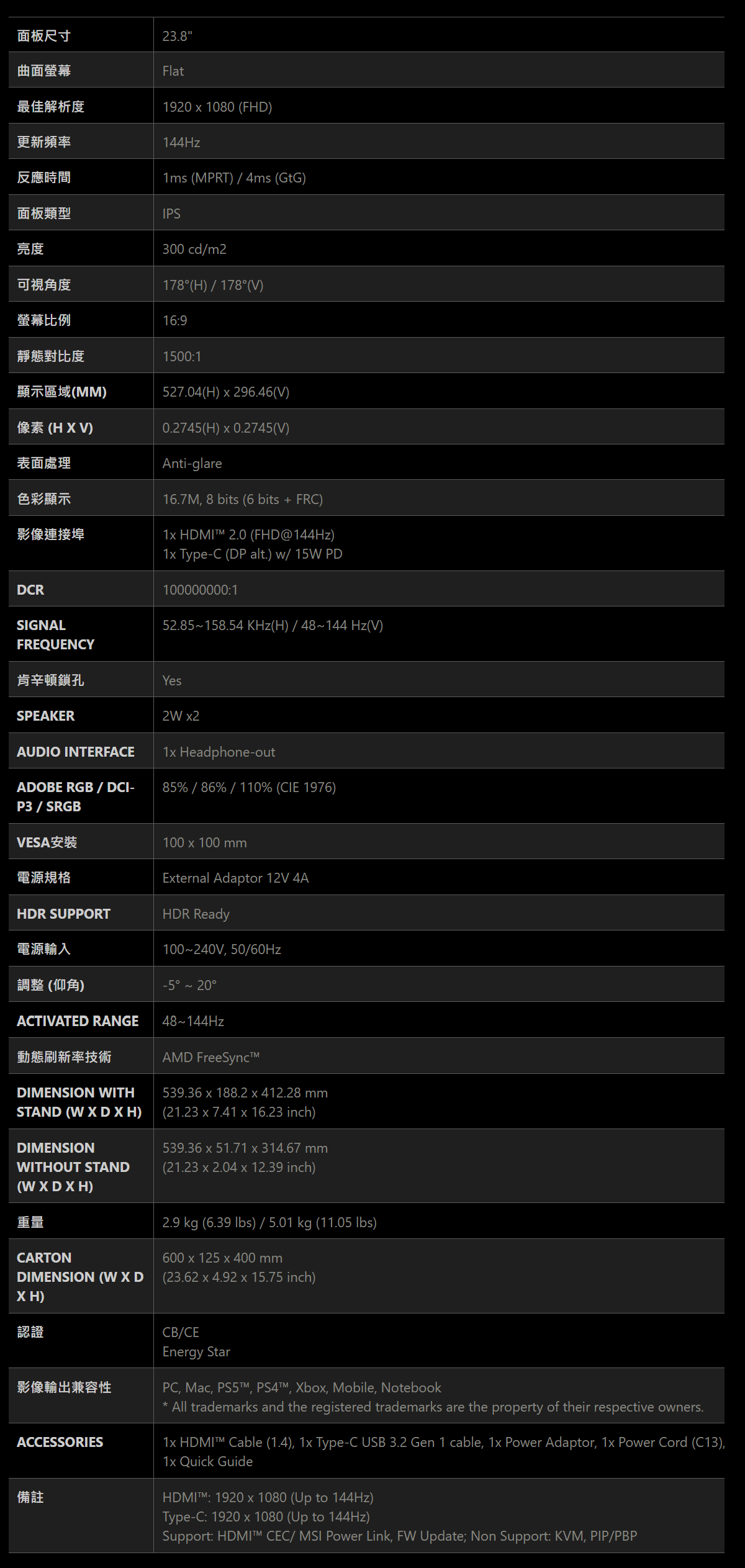 DOA天數 | 1.購買日起7日內(需提供購買憑證或保卡) 2.若無購買憑證,將以建達出貨日起算 |