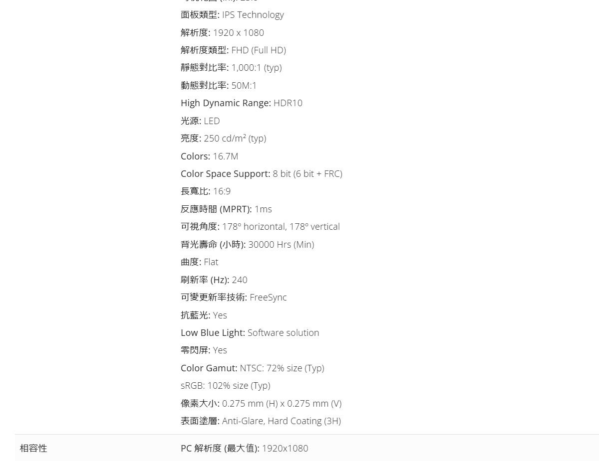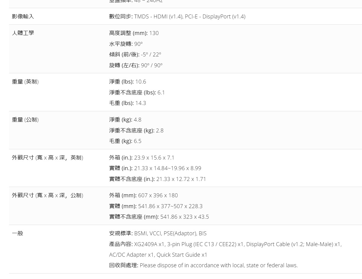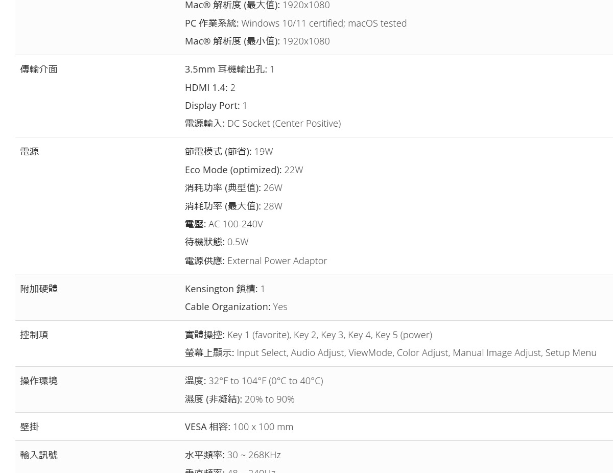 | DOA天數 | 提供自購買日起一個月內免費更換相同全新產品之服務,若超過此期限將比照一般維修流程方式處理。 |