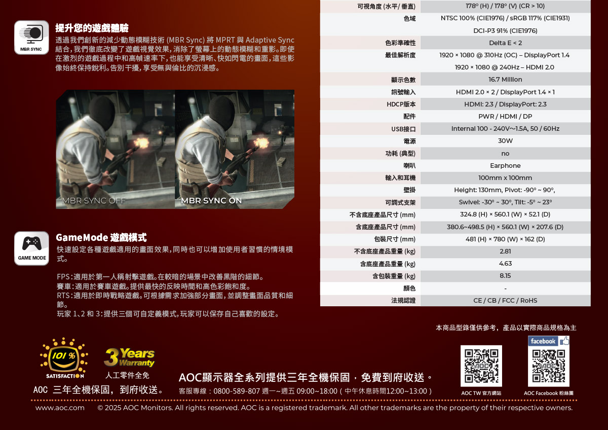 維修服務電子信箱:taiwan@aoc-support.com