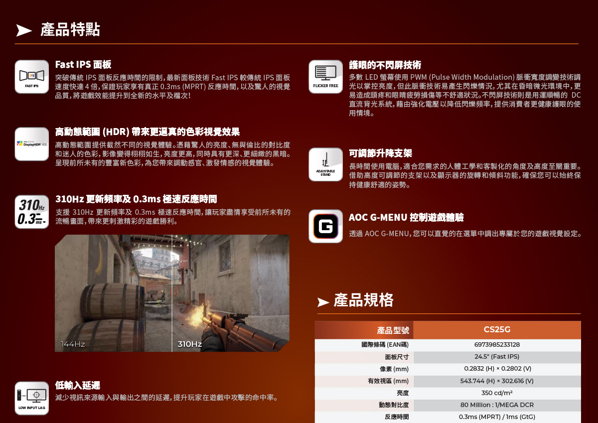 AOC CS25G 24.5"電競顯示器