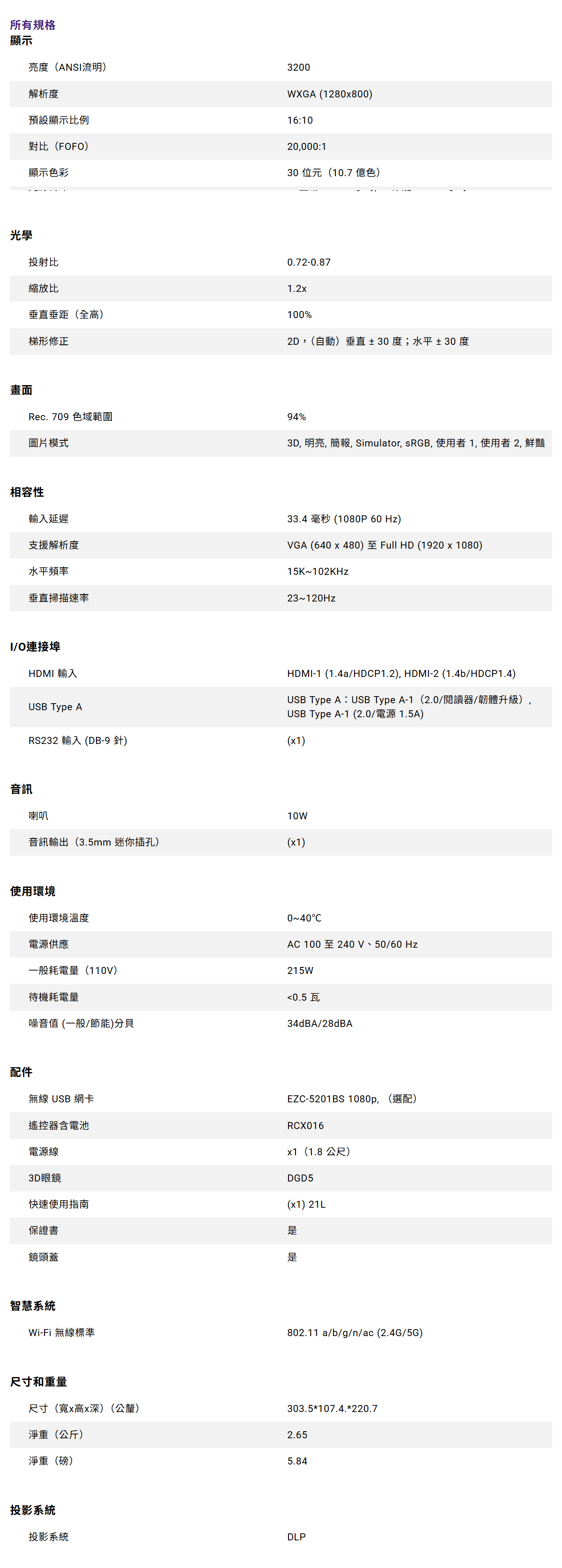 - 1.2X變焦/HDMI IN x2/20000hrs