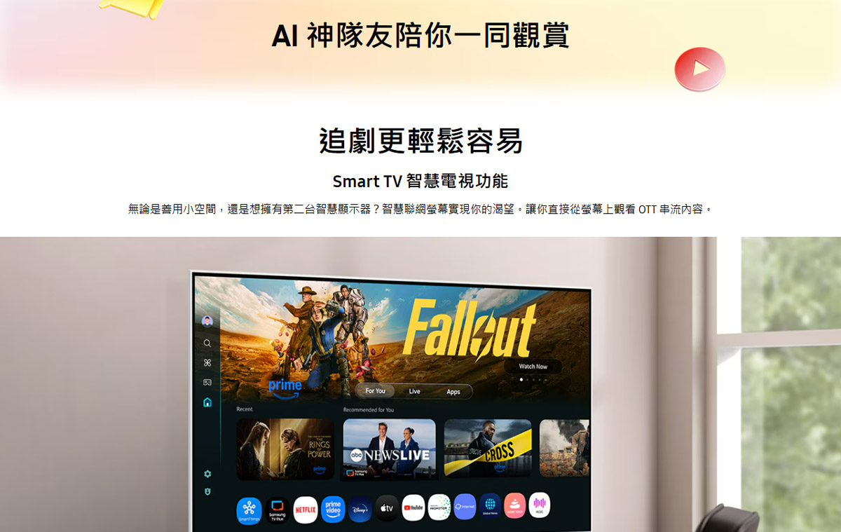 Samsung 43" AI FollowMe Pro 4K 移動式智慧聯網螢幕組-白(M7 M70F) ( LS43FM703UCXZW + ITW-CT40-W )