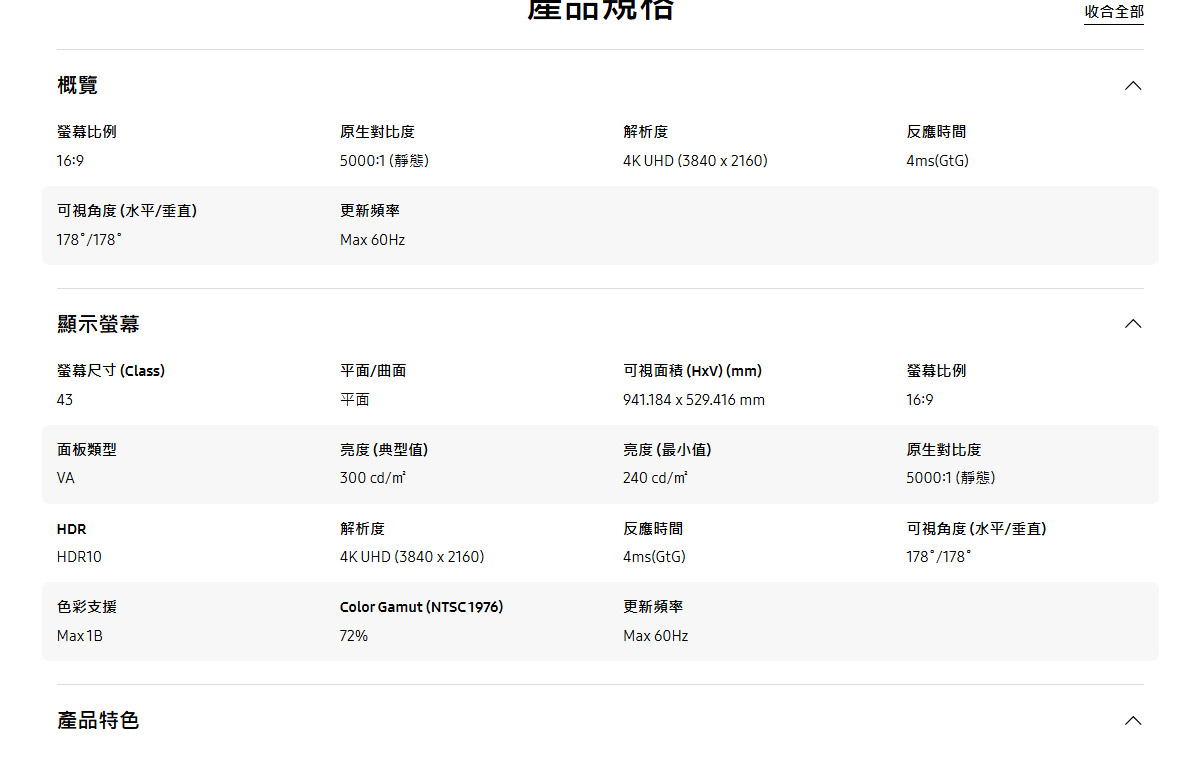 - 解析度4K(3840*2160)/對比5000:1