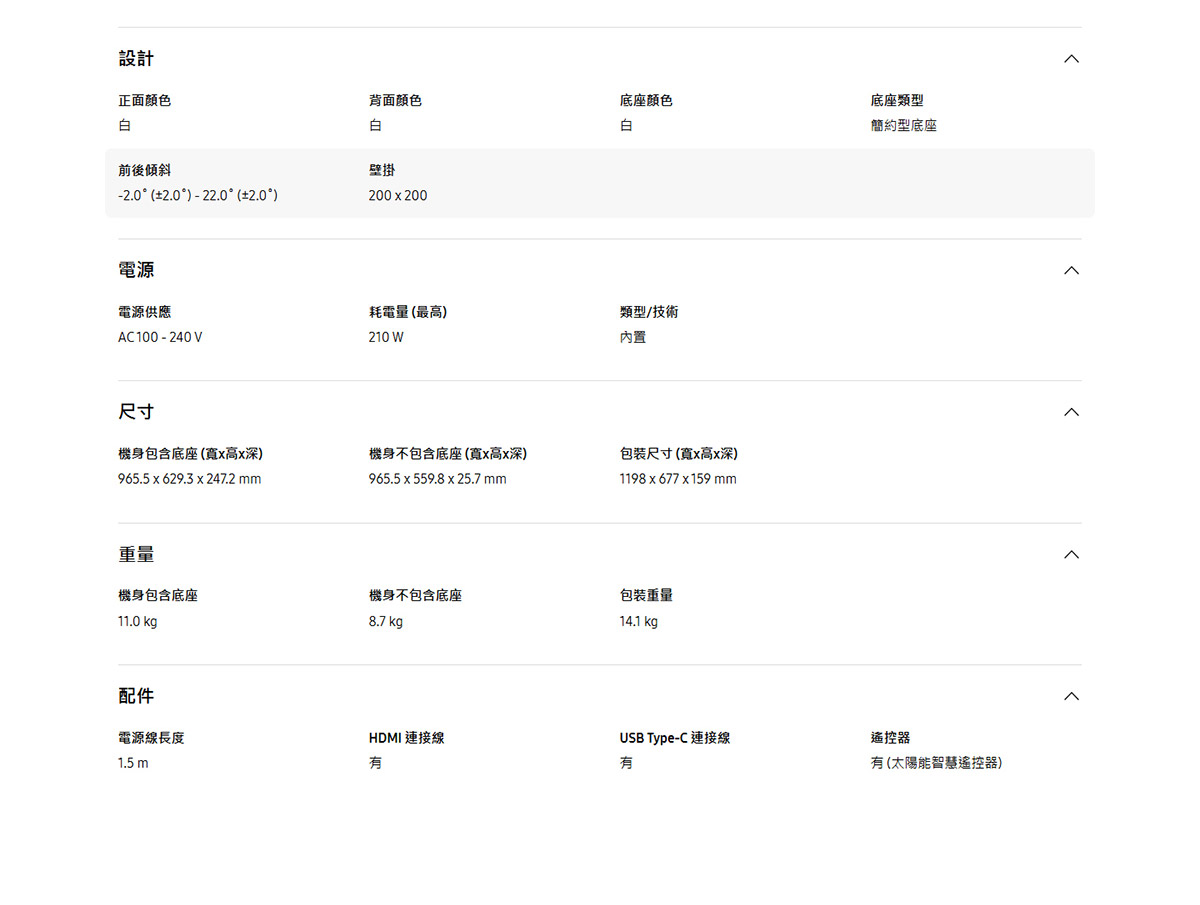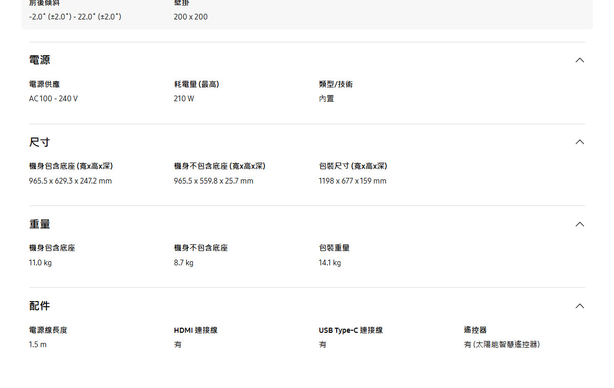 - 無底座尺寸965.5 x 559.8 x 25.7mm
