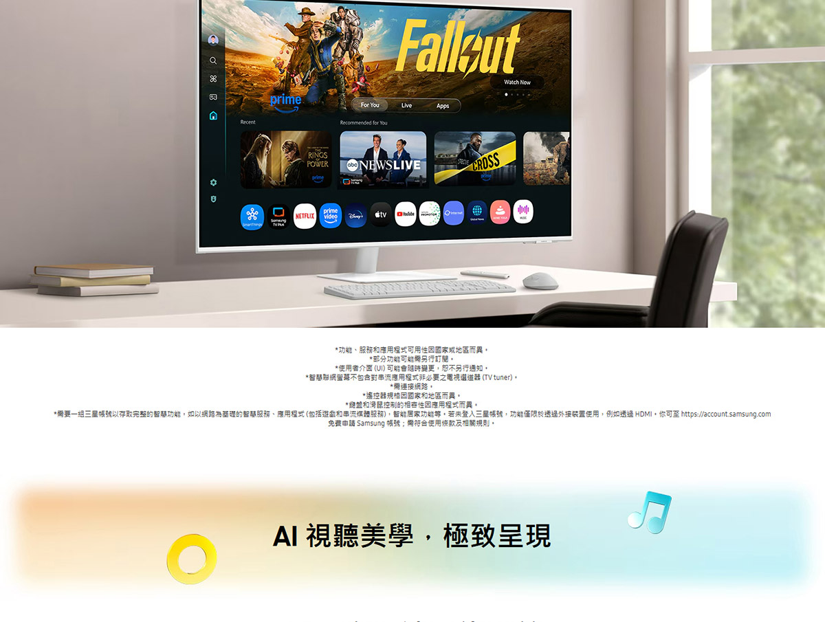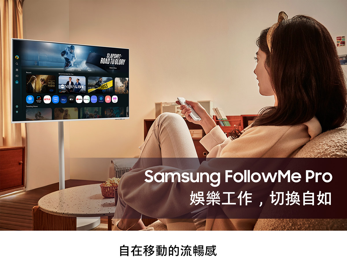 Samsung 43" AI FollowMe Pro 4K 移動式智慧聯網螢幕組-白(M7 M70F) ( LS43FM703UCXZW + HA-MTS2S43WHT )