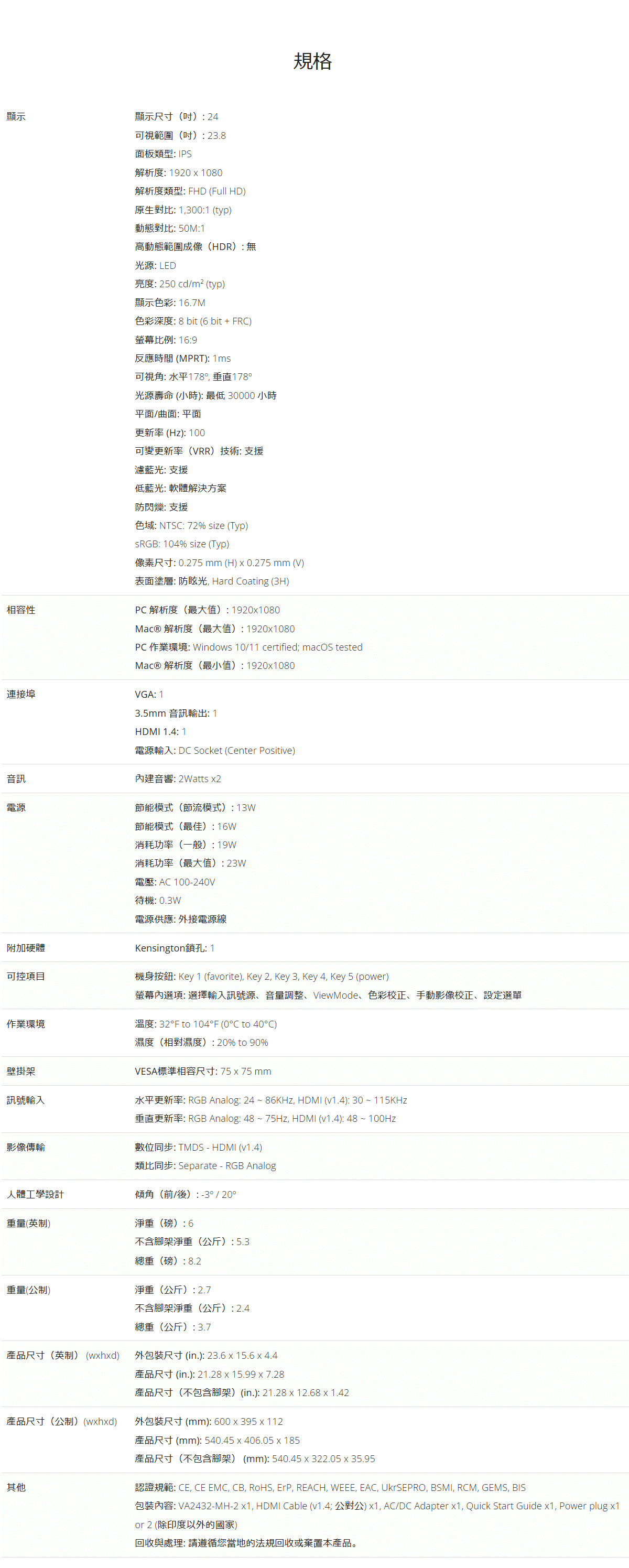| 保固期 | 依原廠定義 |
