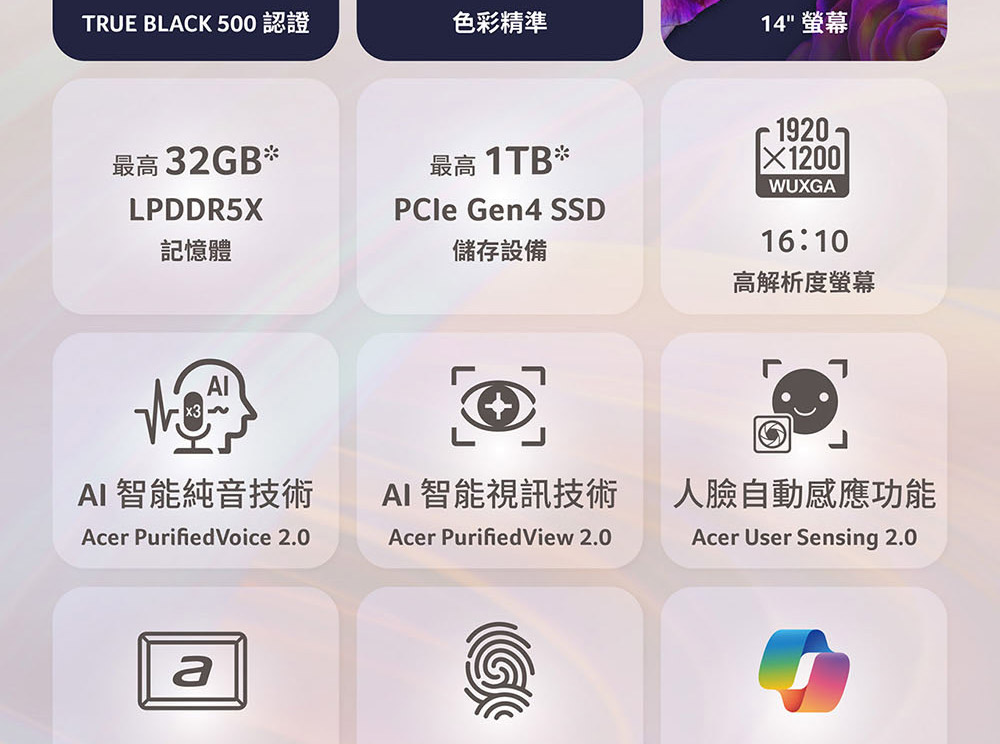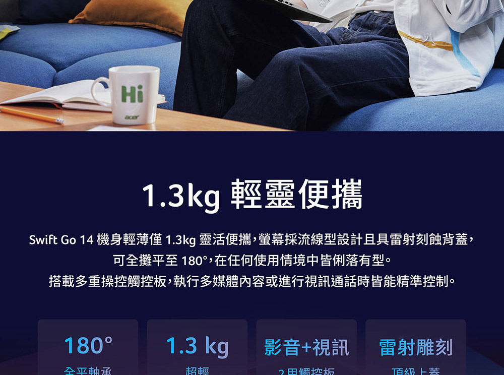 ACER Swift Go系列:SFG14-74-79P0(銀) ( UN.JF8TA.002 ) 14" 16:10 鏡面OLED 1920x1200Intel® Core™ Ultra 7 processor 255H32GB LPDDR5X(Onboard),1TB PCIe Gen4wifi7+BT,100W Type C Adapter,全機鋁合金 建達料號:NBACUNJF8TA002 原廠型號:UN.JF8TA.002 建議售價:$ 43,900 (含稅) 我要購買 商品介紹