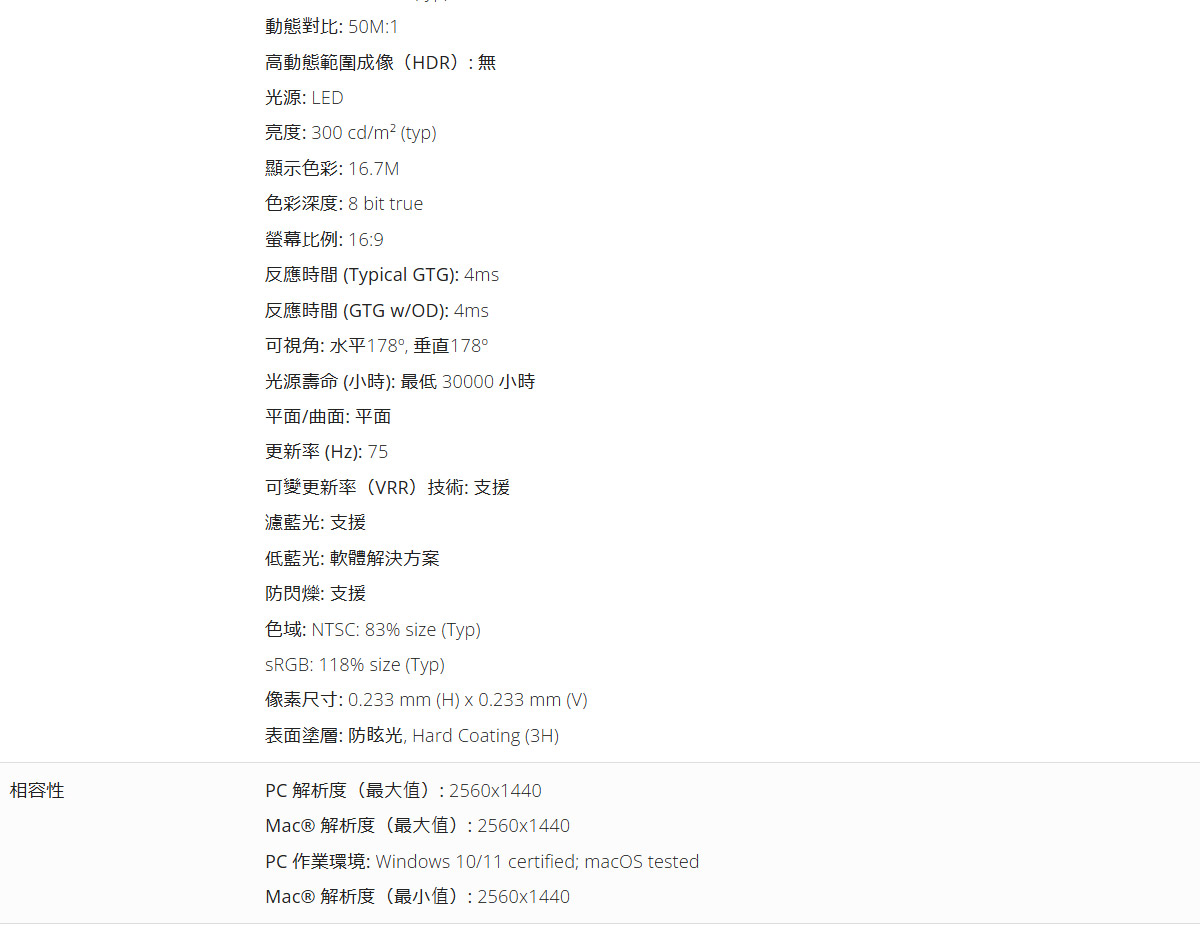 | DOA天數 | 提供自購買日起一個月內免費更換相同全新產品之服務,若超過此期限將比照一般維修流程方式處理。 |