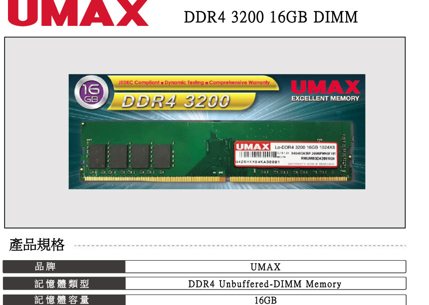 - UMAX DDR4 3200 16GB 1024*8 PC 用