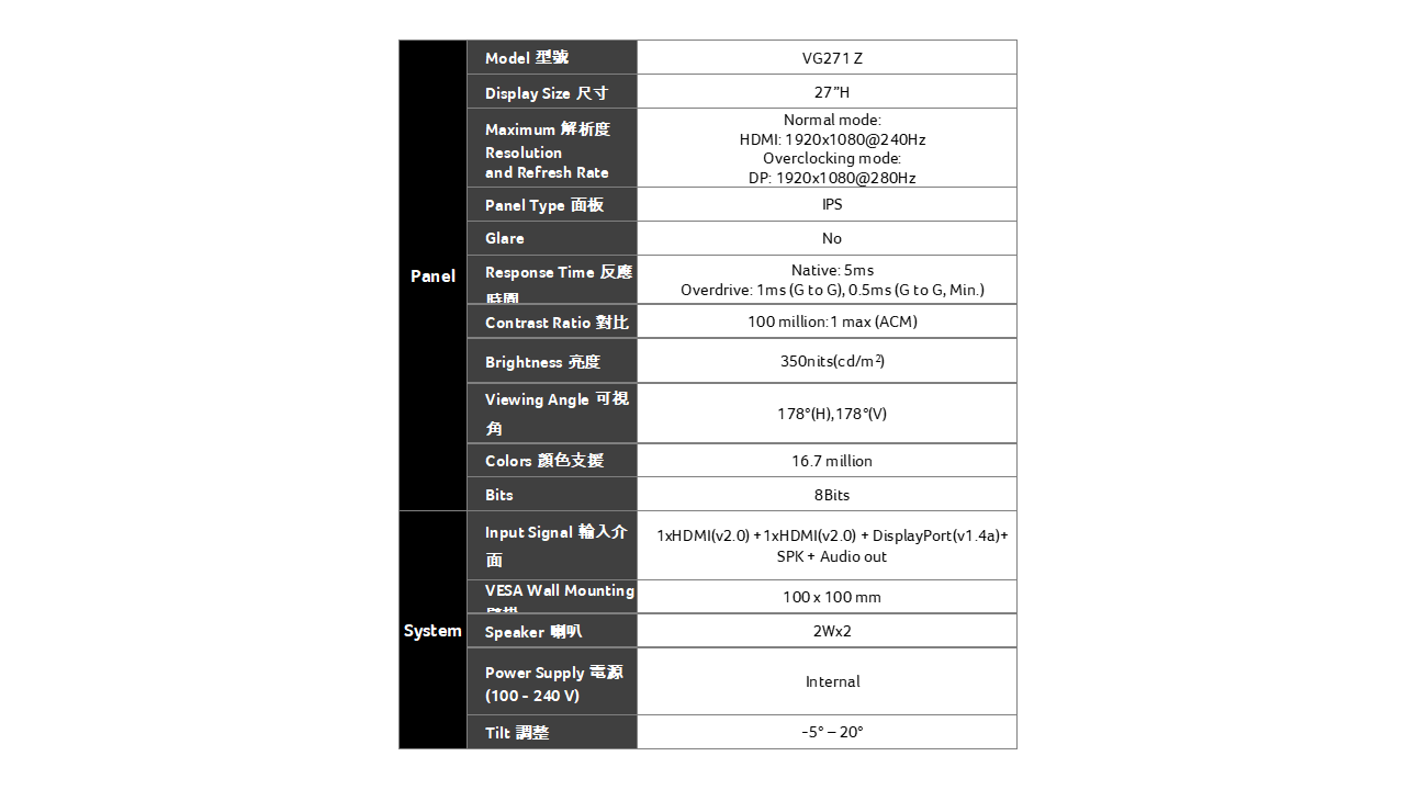 ACER Nitro VG271 Z 27"電競螢幕 ( MM.TFVTT.005 )