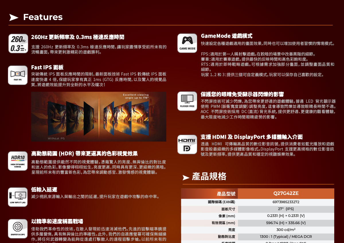 AOC Q27G42ZE 27" 電競顯示器 ( Q27G42HE )