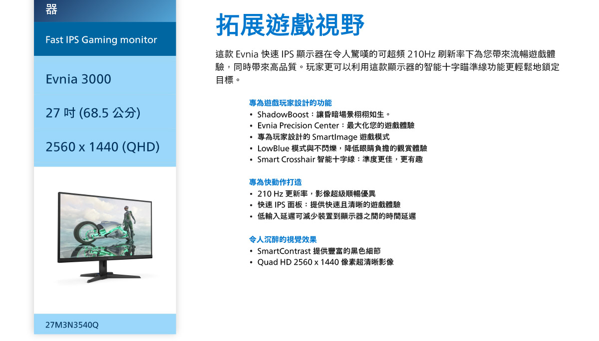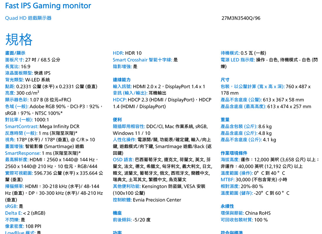 - 解析度 : 2560 x1440 @144 Hz (HDMI)