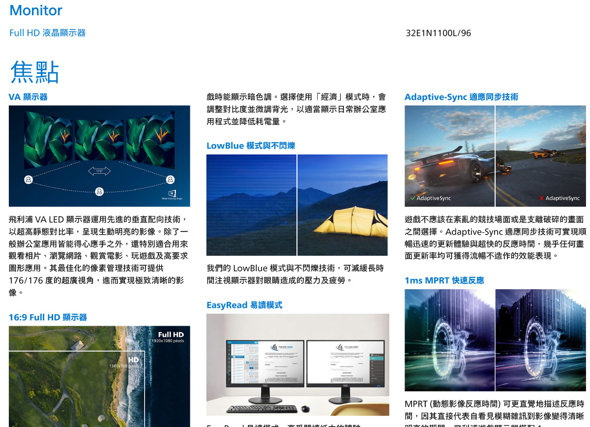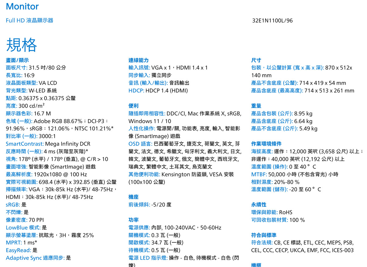 PHILIPS 32E1N1100L 液晶顯示器