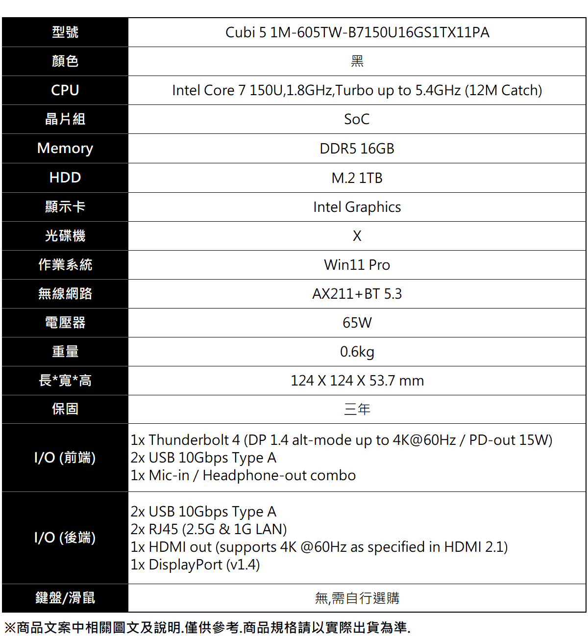 Cubi 5 1M-605TW-B7150U16GS1TX11PA
