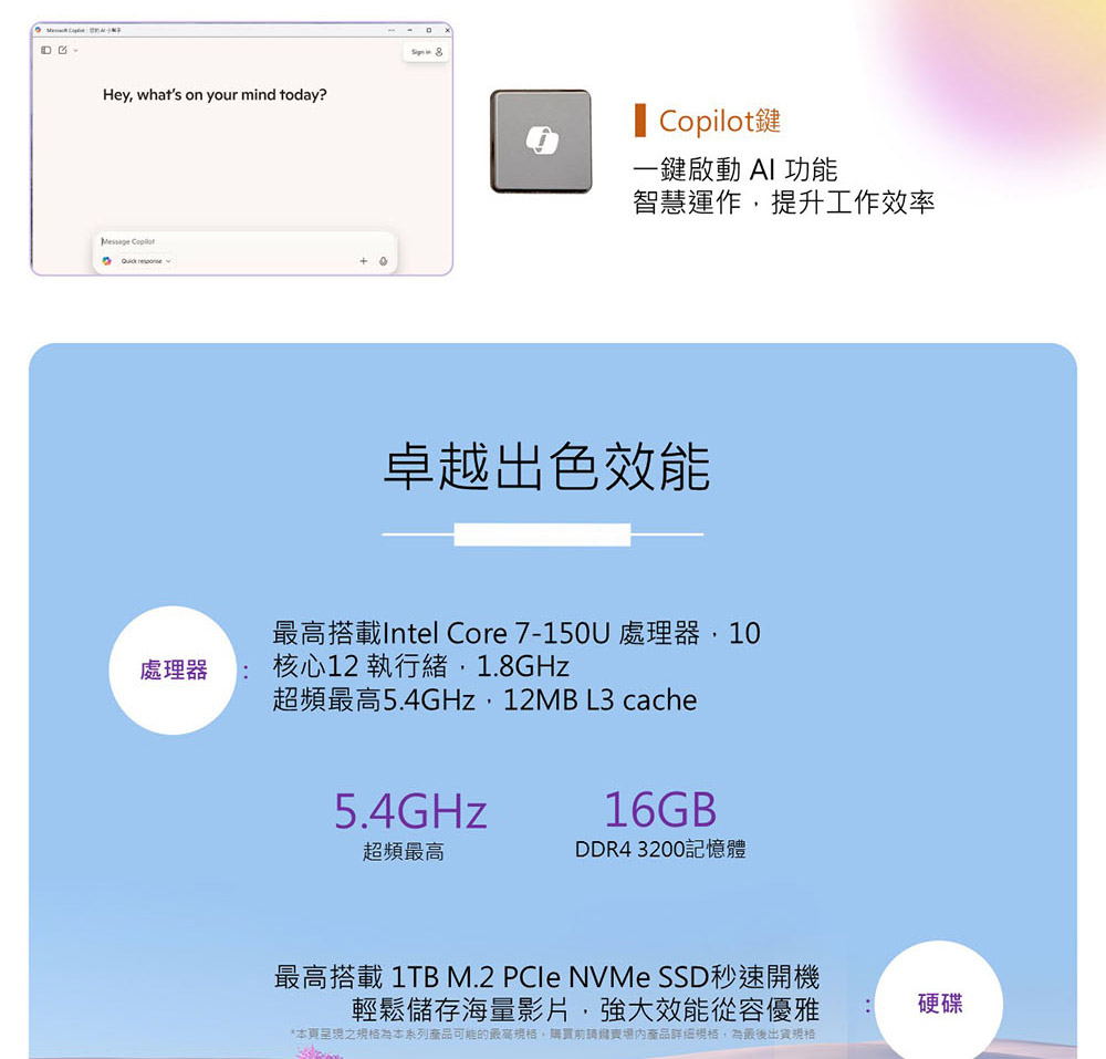 - Intel Core5-120U/16G*1 DDR4 3200/