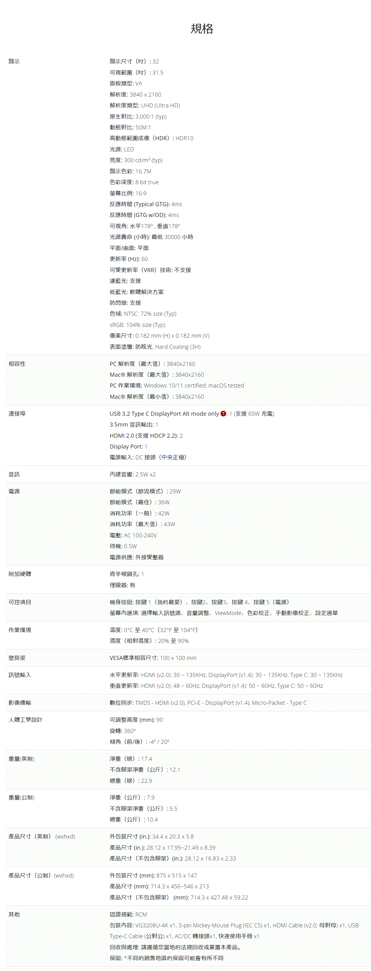 ViewSonic 優派VG3208U-4K 32"顯示器