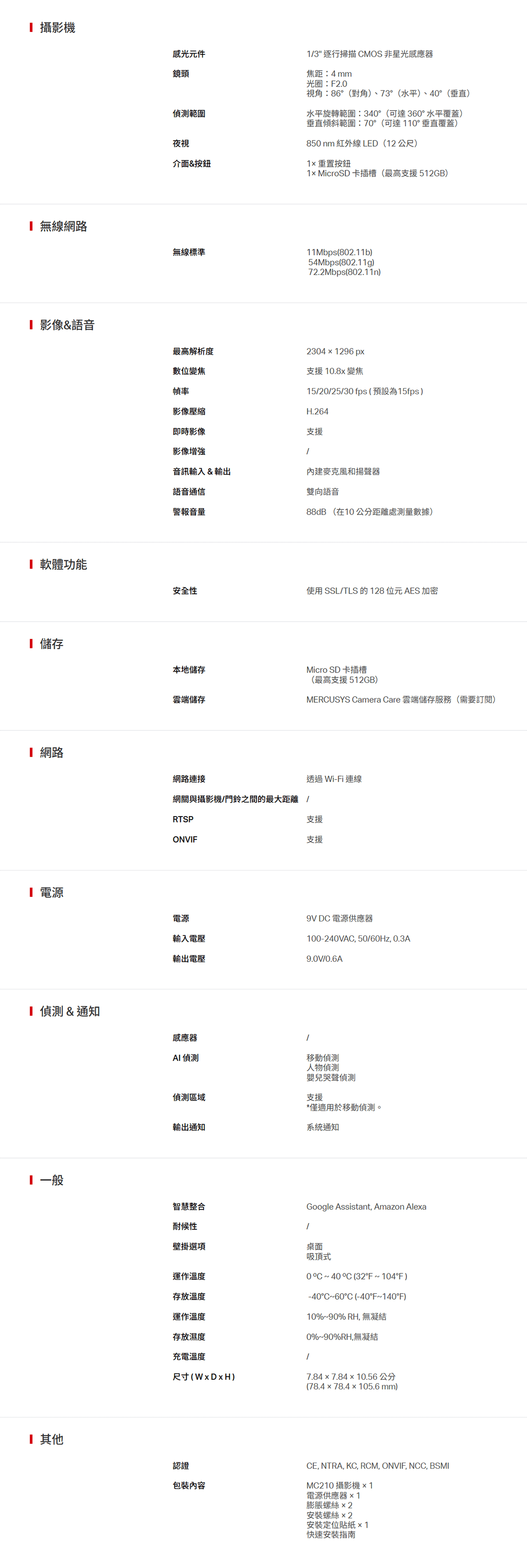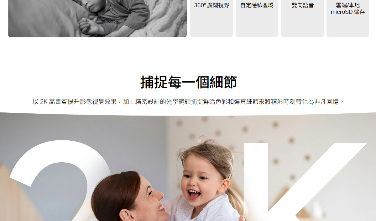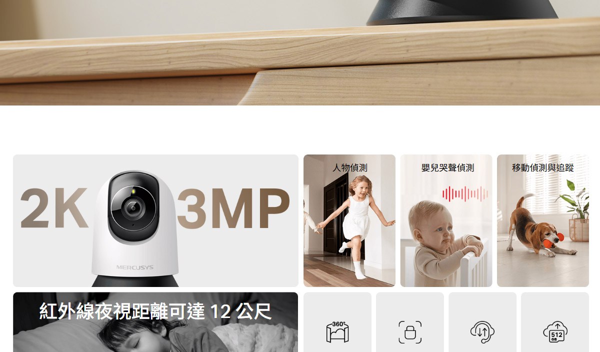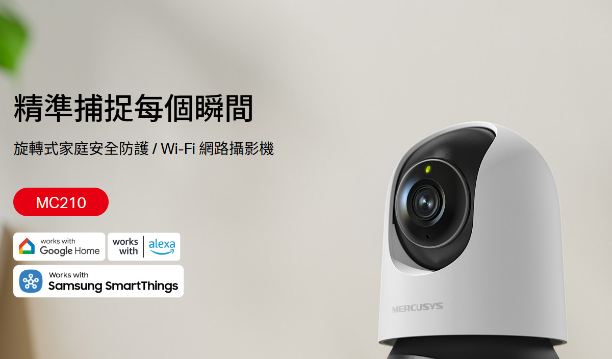 TP-LINK 旋轉式家庭安全防護 / Wi-Fi 網路攝影機 ( MC210(EU) Ver:1.0 ) 2K 3MP(2304 x 1296 px)AI智慧偵測、雙向語音夜視850 nm 紅外線 LED(12 公尺) 建達料號:NCMEMC210EU 原廠型號:MC210(EU) Ver:1.0 建議售價:$ 699 (含稅) 我要購買 商品介紹