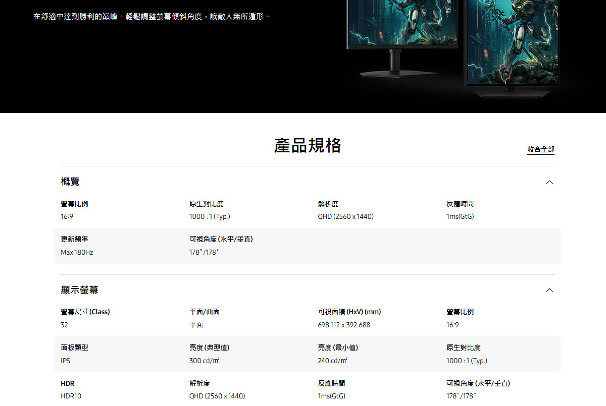Samsung 32" Odyssey G5 IPS 平面電競顯示器G50F ( LS32FG502ECXZW ) 解析度QHD(2560*1440)IPS面板、反應時間1ms(GtG)更新頻率 Max 180Hz含底座尺寸714.6*625.9*250.2mm不含底座尺寸714.6*418.4*45.7mm 建達料號:LCSAS32FG502EC 原廠型號:LS32FG502ECXZW 建議售價:$ 7,490 (含稅) 我要購買 商品介紹